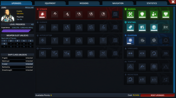 - Constant progression grants the unlocking of bigger ships and more powerful gear and more weapon and equipment slots as you level up your pilot.